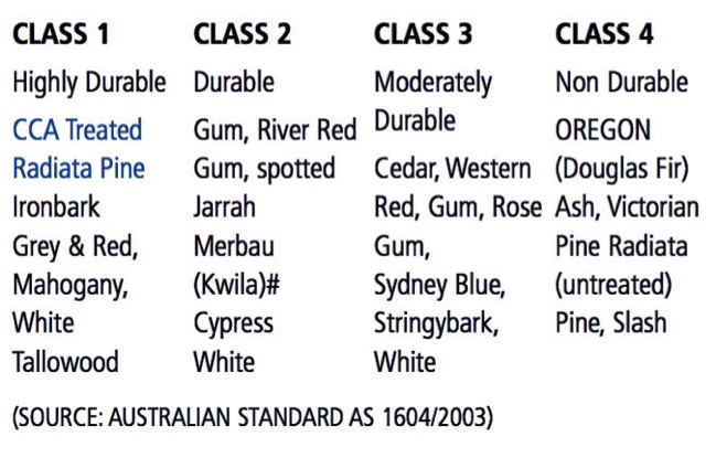 Natural Durability of selected timbers and C.C.A preservative treated pine. (sapwood)