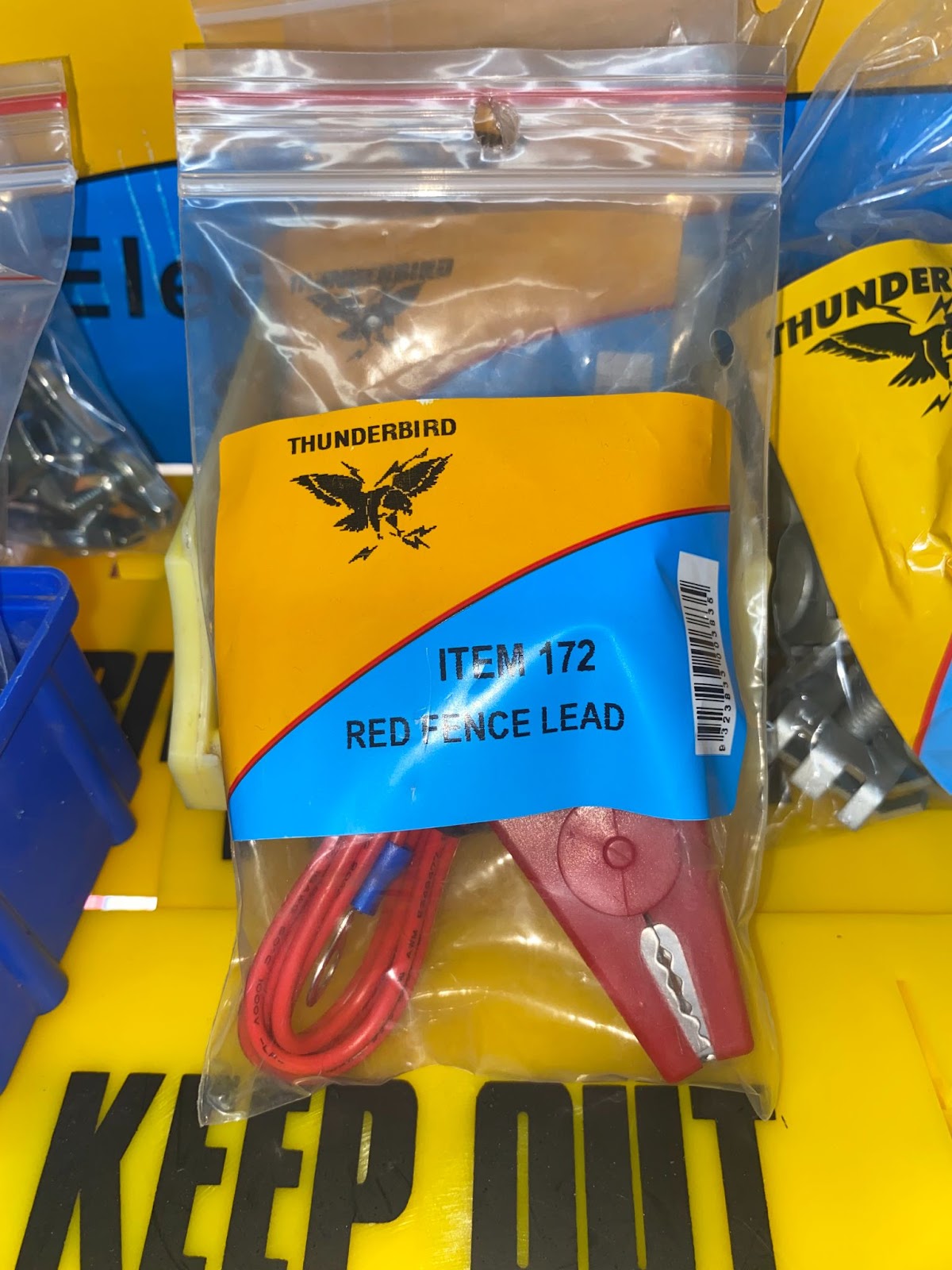The Thunderbird EF-172 Red Fence Lead & Clip is a high-quality connection cable designed to link your electric fence energiser to the fence line safely and efficiently. It features an insulated clip on one end and a ring terminal on the other, providing a secure and reliable connection for consistent fence performance.